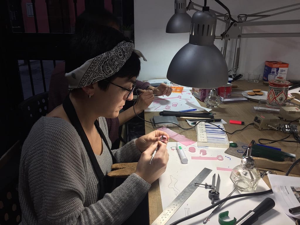 Buscando formaciones y cursos sobre moda, encontré un curso en el que me enseñaban a hacer anillos de plata en un taller de Madrid. Y no pudo ir mejor: sucedió la magia dentro de mí y sentí la necesidad de aprender más y más sobre este arte.
